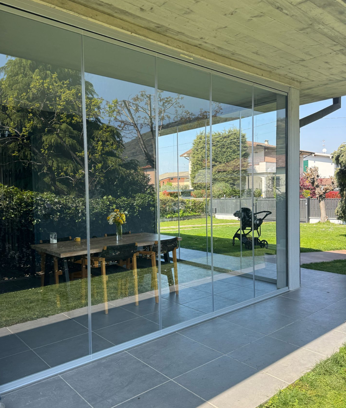Scorrono fluide e silenziose a separare o aprire interno ed esterno in abitazioni, ristoranti, hotel, negozi.