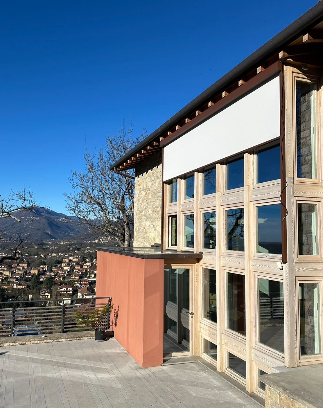 La stagione detta il tessuto: ombreggiante, oscurante o zanzariera per l’estate, Cristal per l’inverno.